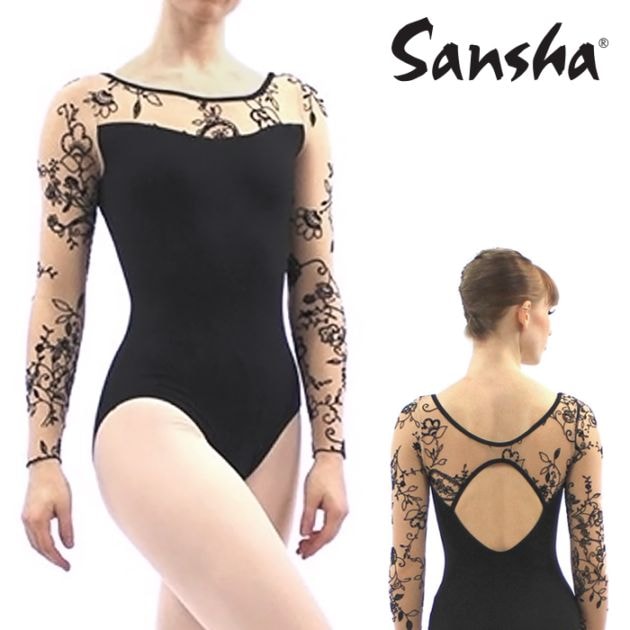 【サンシャ】50BA1157P (Veronique) ヴェロニック ベロア 刺繍 長袖 バレエレオタード 大人・ジュニア バストポケット付