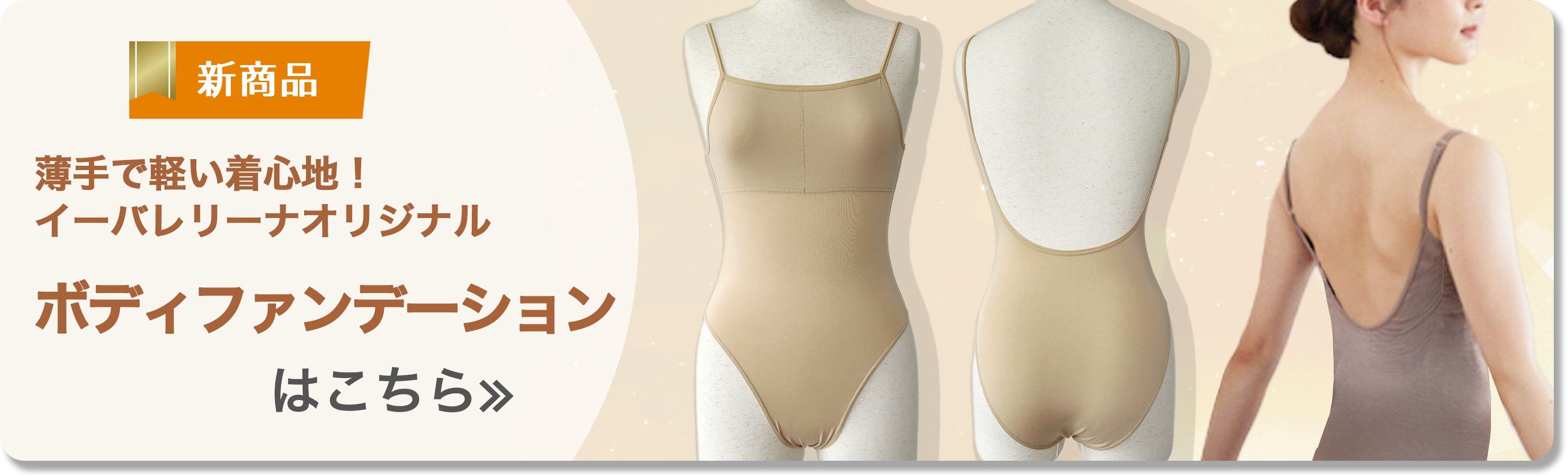 ※ 器械体操・新体操用のボディファンデーションで、ややローカット気味ですが、バレエ用としてもご利用いただけます。