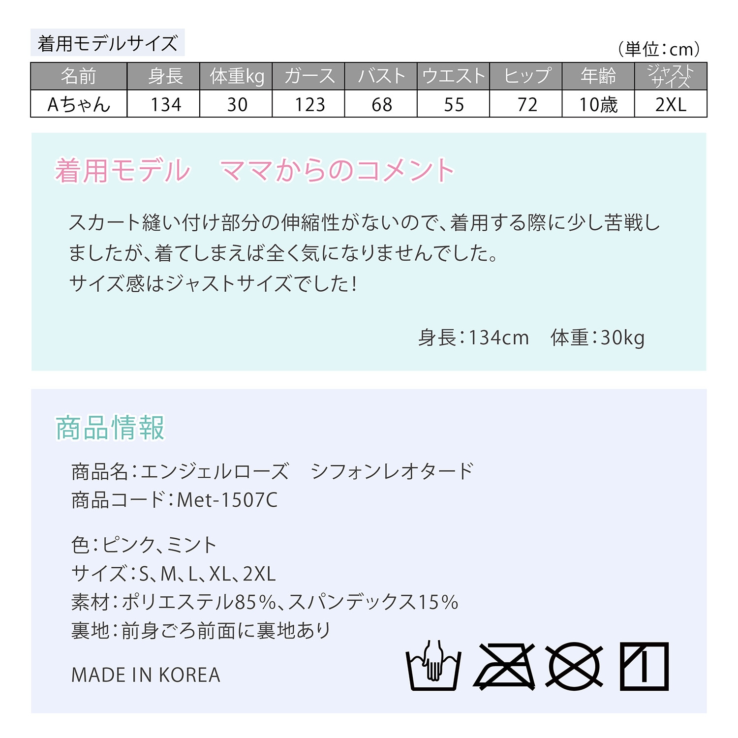スカートなしレオタードで人気の【エンジェルローズレオタード】に