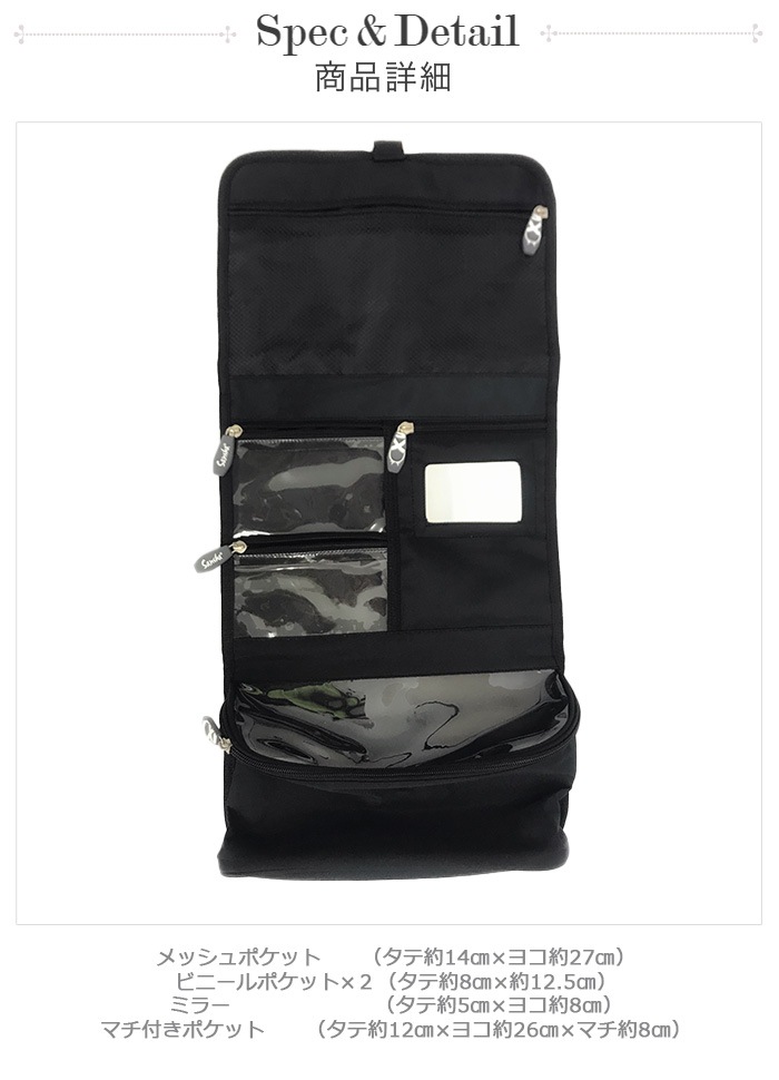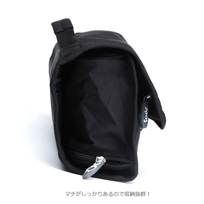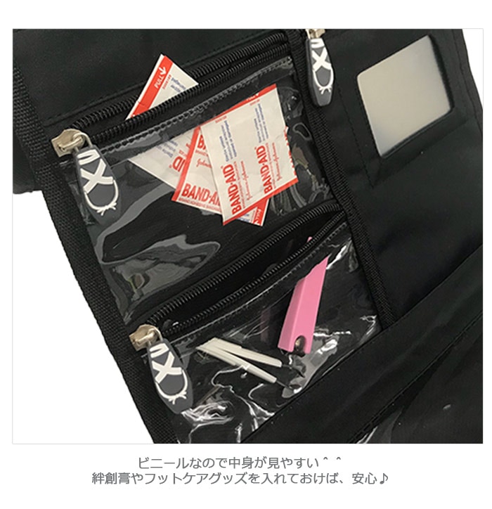 メッシュ、ビニール、マチ付きの三種類のポケットがあるので