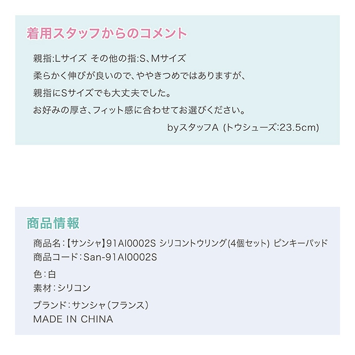 【サンシャ】91AI0002S バレエ シリコン トウリング(4個セット)ピンキーパッド |