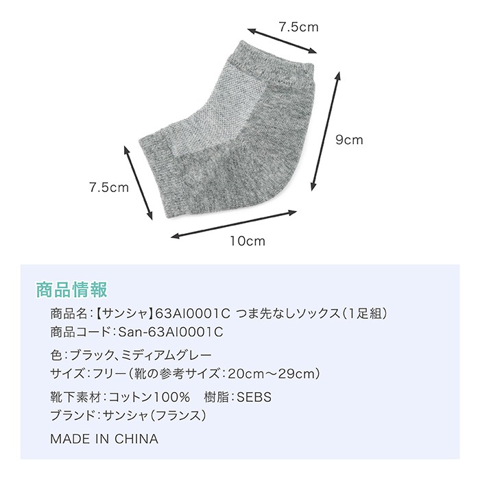 【サンシャ】63AI0001C つま先なしソックス(1足組)バレエ・ダンス(フリーサイズ)黒/ブラック・グレー |