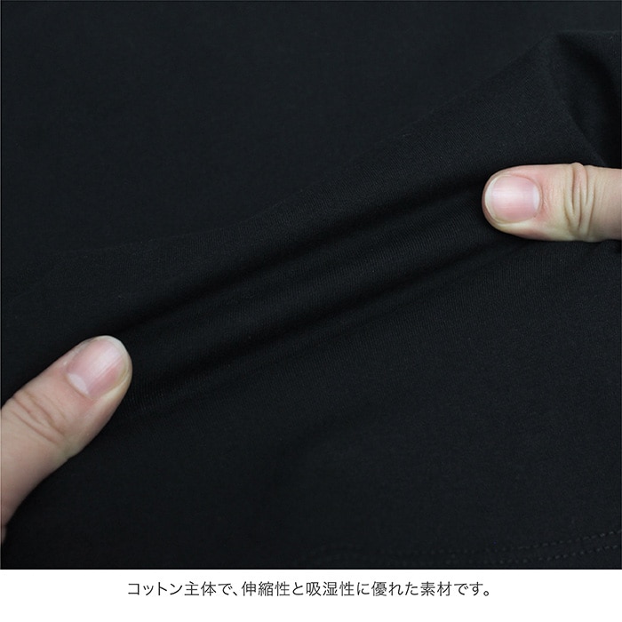 コットン主体の生地で、動きやすい伸縮性と、汗をしっかり吸収する吸湿性を両立。
