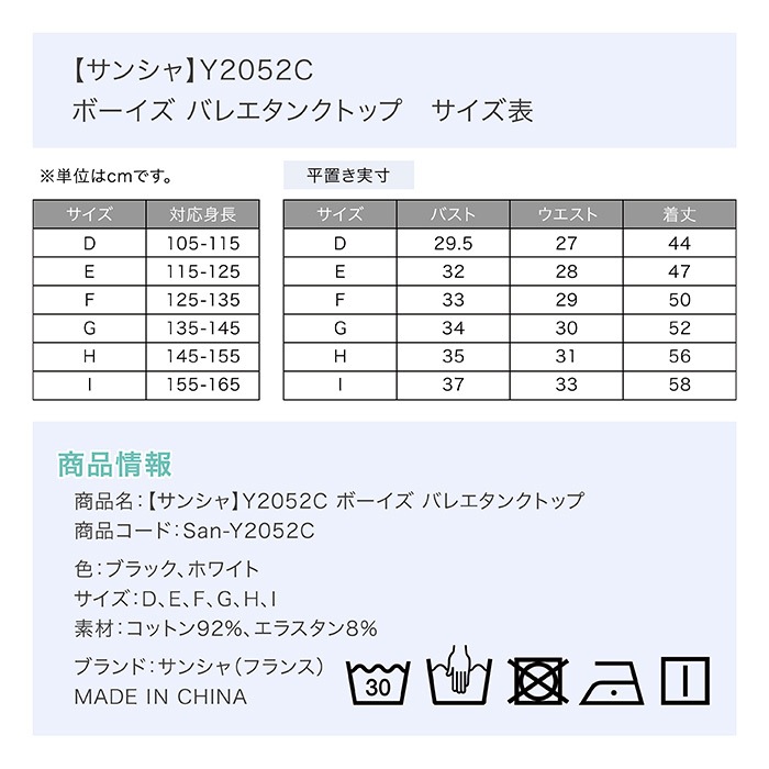 【サンシャ】Y2052C ボーイズ バレエタンクトップス / 黒ブラック・白ホワイト |