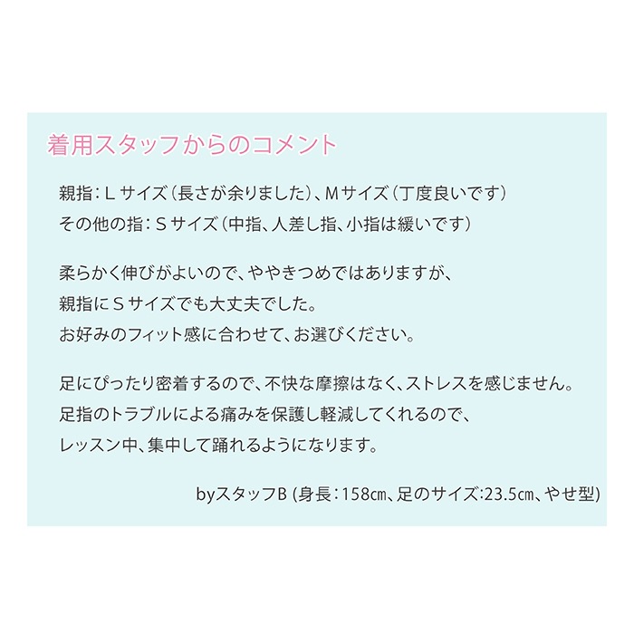 トウシューズ、バレエシューズはもちろん、パンプスや爪の保護にもお使いいただけます。
