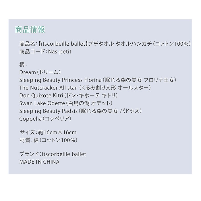 【itscorbeille ballet】バレエ プチタオル タオルハンカチ (コットン100%)発表会プレゼント(バレエグッズ) |
