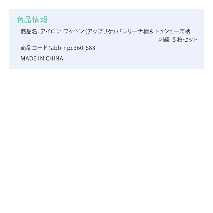バレリーナ柄&トゥシューズ柄 刺繍 5枚セット