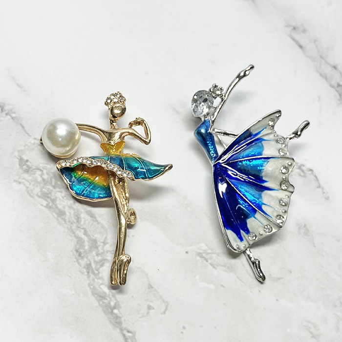 ブルーのスカートが爽やかな、バレリーナモチーフのブローチです。