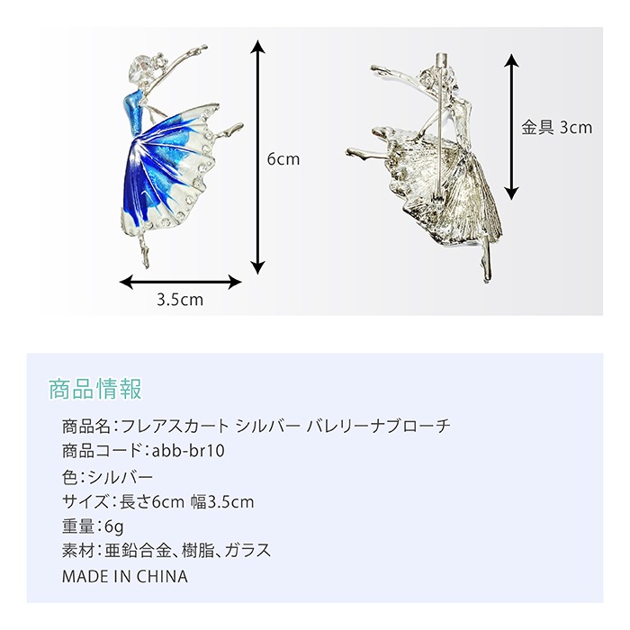 お出かけの時の胸元や、お手持ちのバッグに!きらきら 目を惹いて 上品で華やかにしてくれる お洒落アイテム♪ 発表会のプレゼントなどに! バレエ 雑貨フレアスカート シルバー バレリーナ ブローチ アクセサリー 小物 プレゼント プチ ギフト 贈り物 発表会 誕生日 記念品 レッスン ストーン ビジュー キラキラ おしゃれ 可愛い 青 白 クリア バッジ ピン |