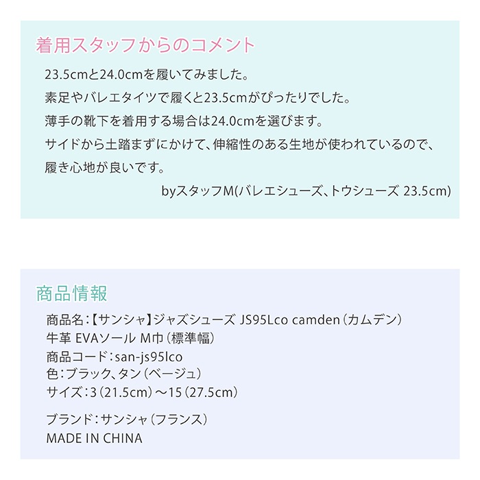 【サンシャ】ジャズシューズ JS95Lco camden(カムデン)牛革 EVAソール M巾(標準幅) |