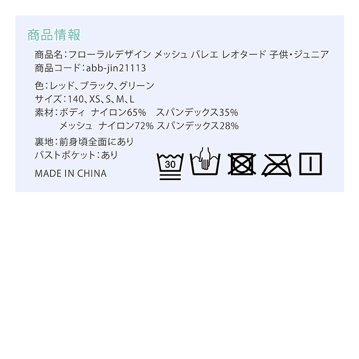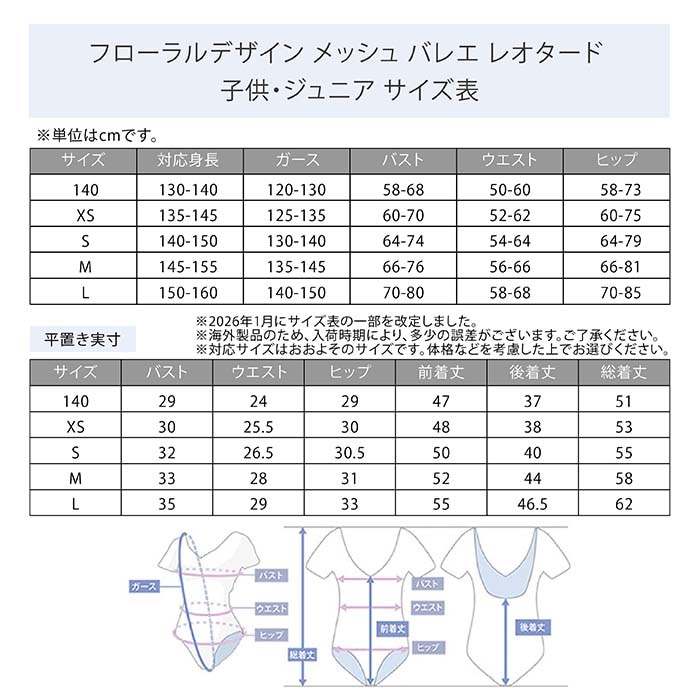 フローラルデザイン メッシュ バレエ レオタード 子供・ジュニア |