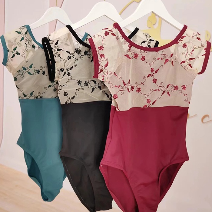 刺繍が可愛らしい半袖タイプのレオタードです。