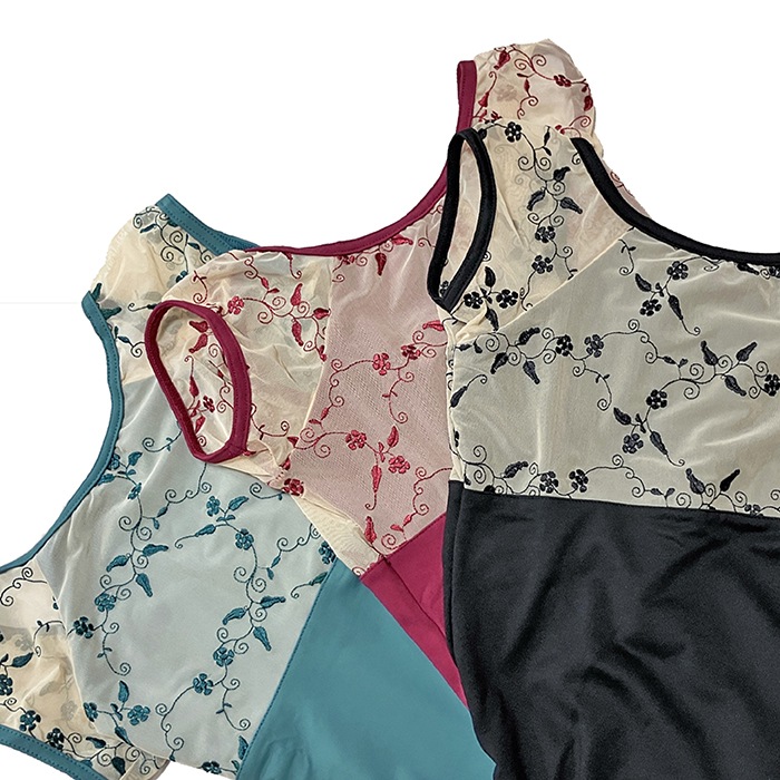 (バスト部分は、表地とメッシュ生地の2枚重ねのため、透け感はありません。)
