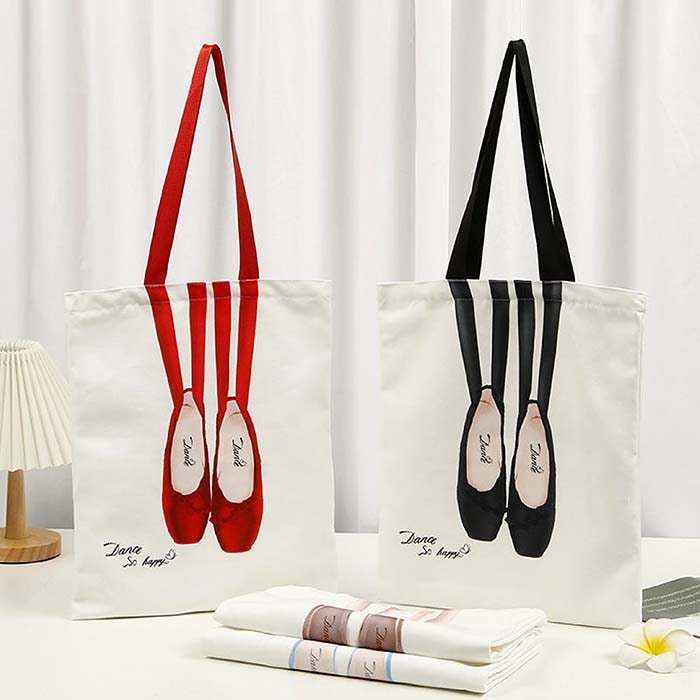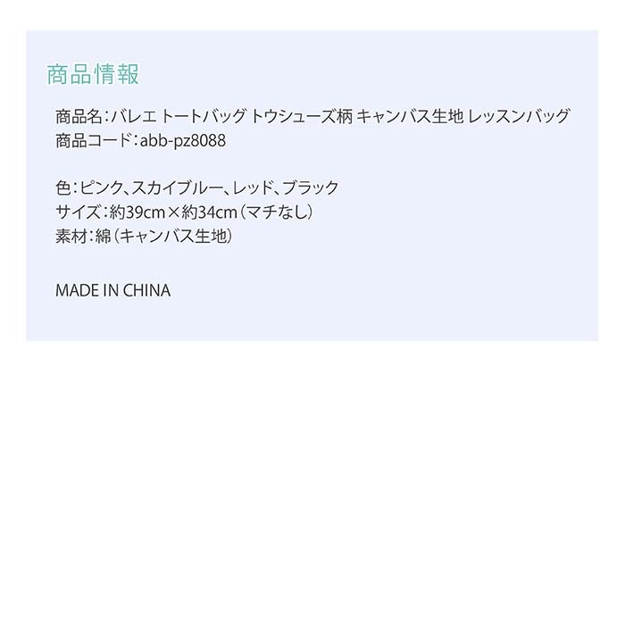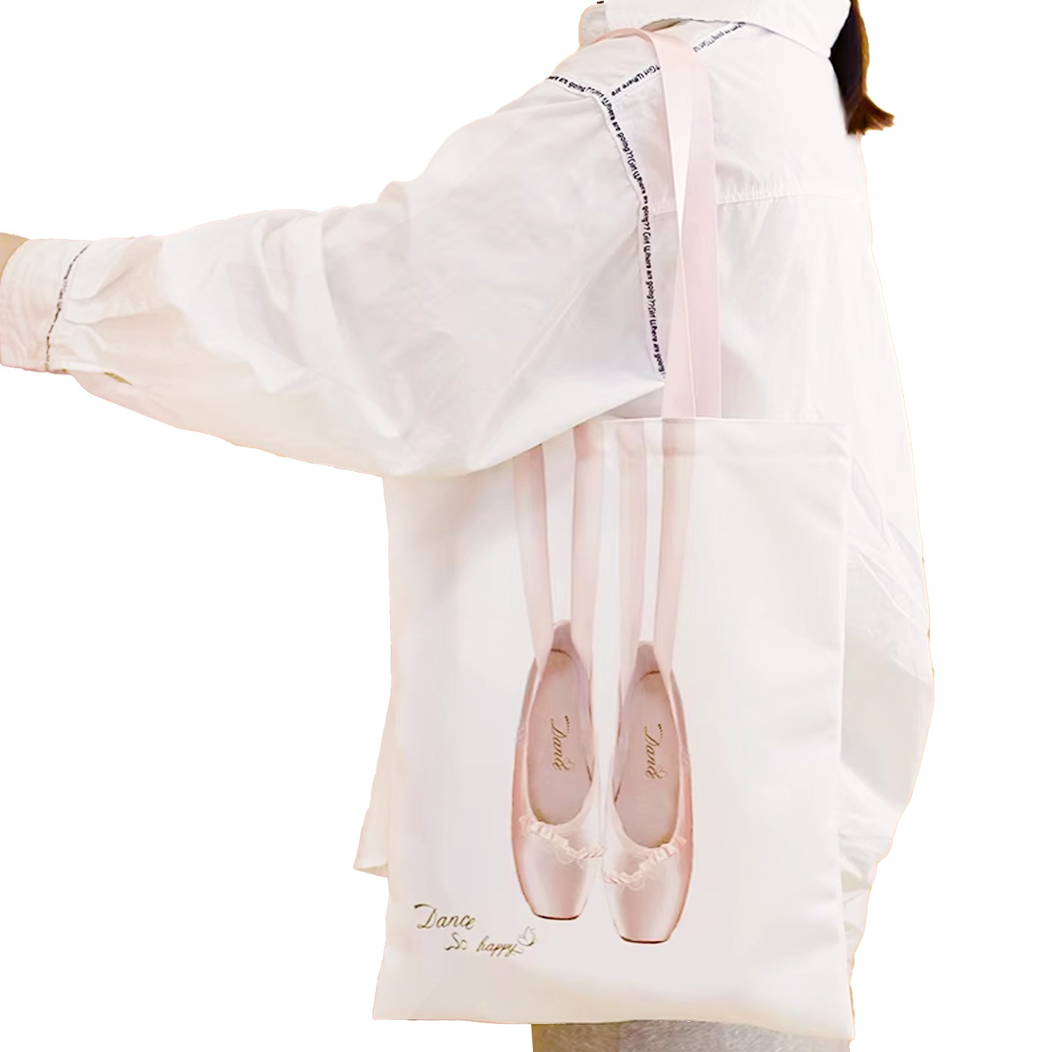 バレエ トートバッグ トウシューズ柄 キャンバス生地 レッスンバッグ |