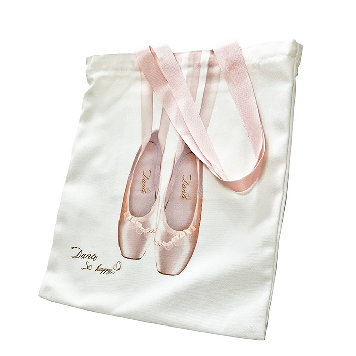 同シリーズ巾着:バレエ シューズバッグ 巾着袋 トウシューズ柄
