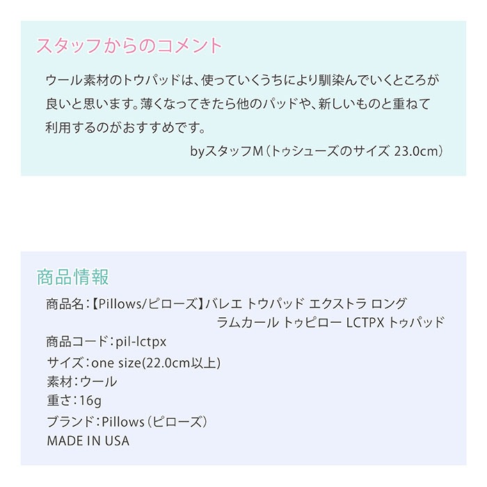 商品名:【Pillows/ピローズ】バレエ トウパッド エクストラ ロング ラムカール トゥピロー LCTPX トゥパッド