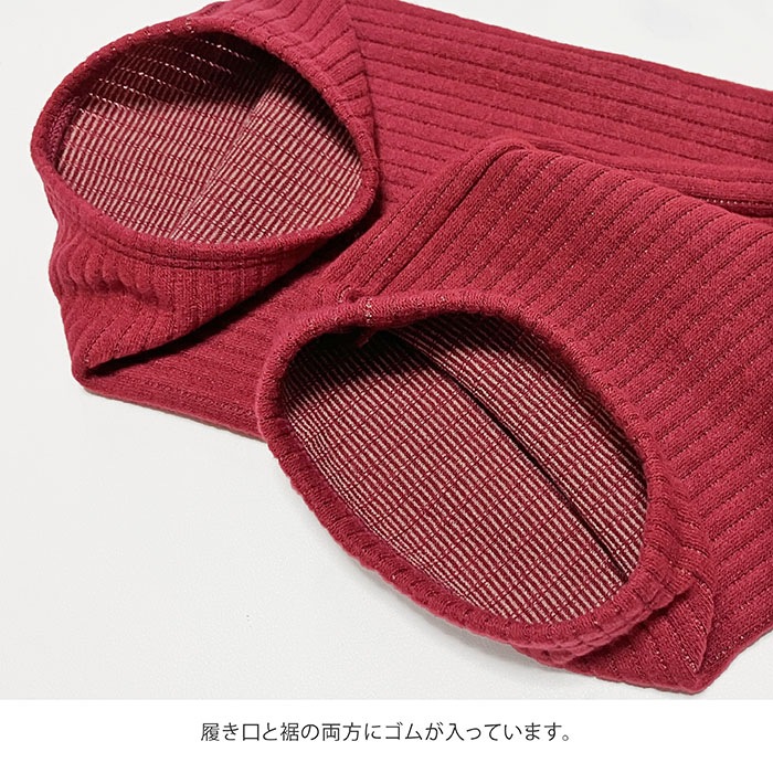 裾にもゴムがはいっている為、裾が床につくことなく着用できます。