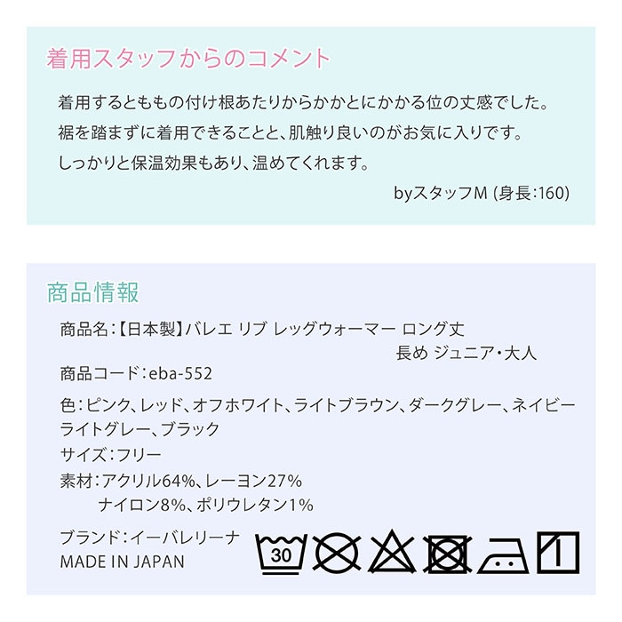 商品名:【日本製】バレエ リブ レッグウォーマー ロング丈 長め ジュニア・大人
