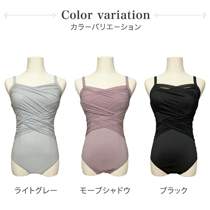 クロスメッシュが上品な、キャミソールタイプのレオタードです。