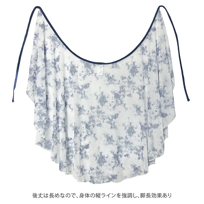 透け感のある軽い素材で、裾広がりのゆるやかなウェーブが優雅さと上品さを演出します。