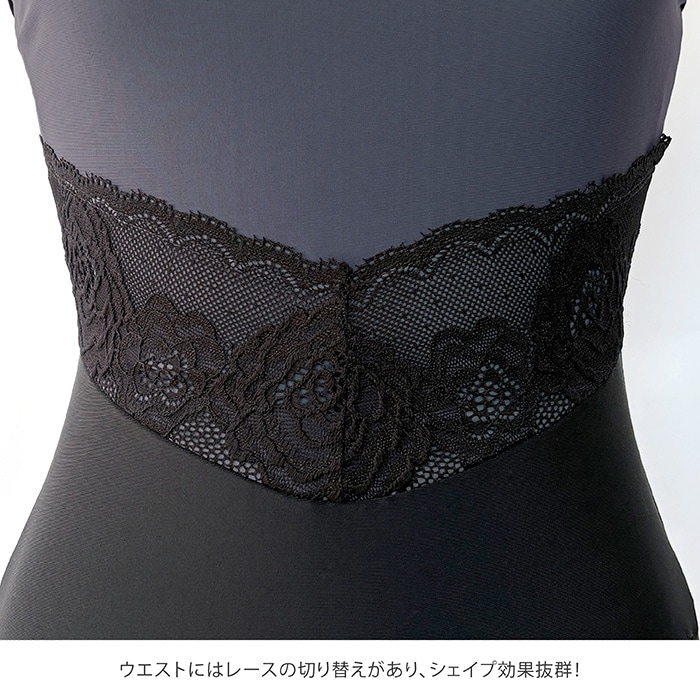 ウエスト部分には幅広のレースで切り替えがあり、ウエストをキュッと細くみせます。