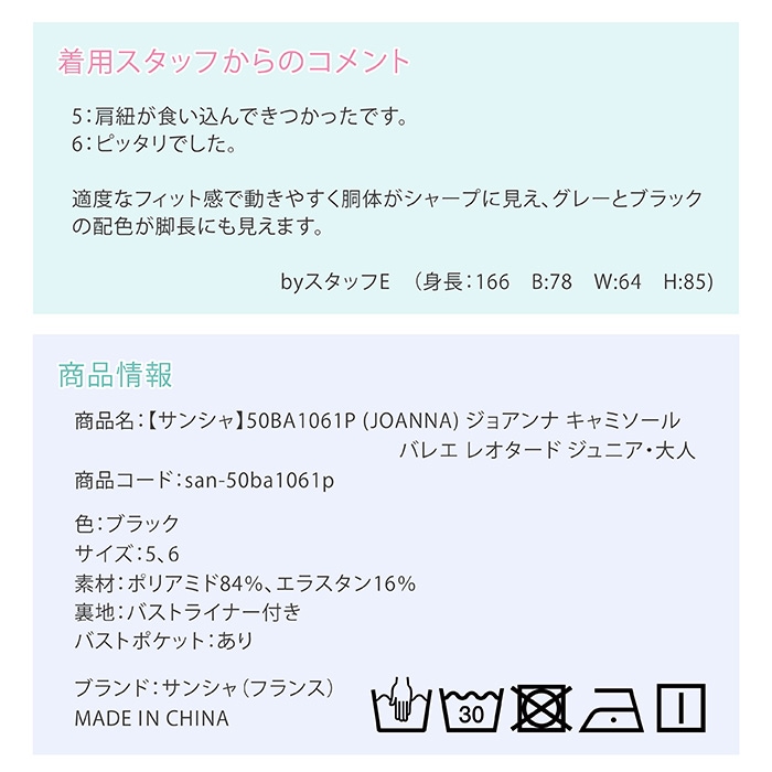 【サンシャ】50BA1061P (JOANNA) ジョアンナ キャミソール バレエ レオタード ジュニア・大人 |