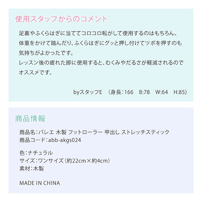 バレエ 木製 フットローラー 甲出し ストレッチスティック |