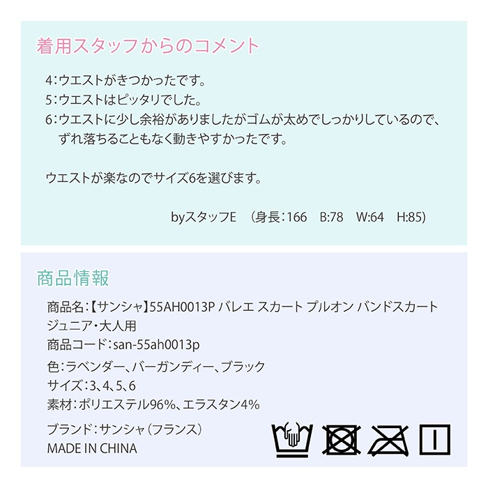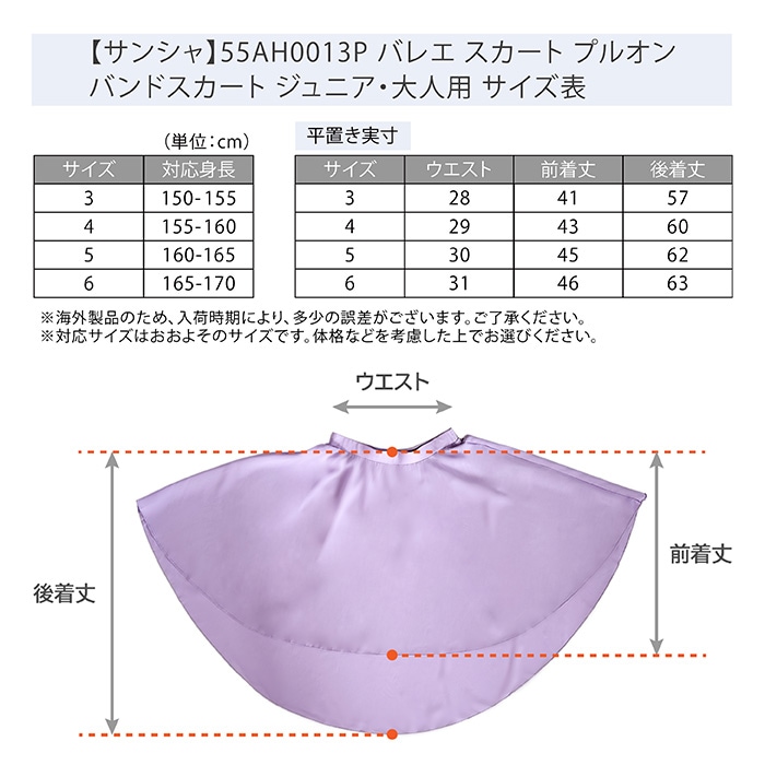 【サンシャ】55AH0013P バレエ スカート プルオン バンドスカート ジュニア・大人用 |