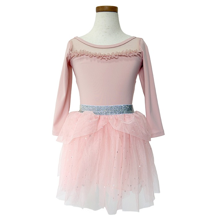 コーディネート例:【サンシャ】フリルレース 長袖 バレエ レオタード 子供・ジュニア