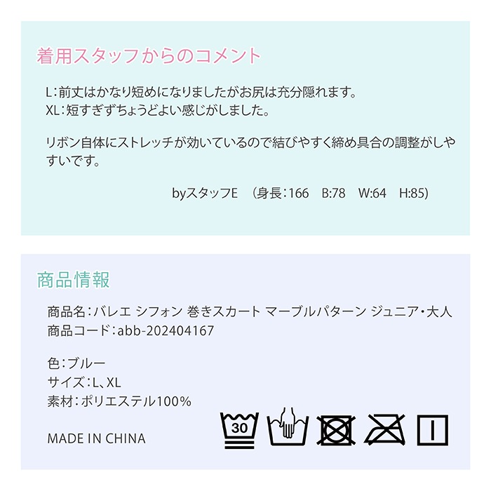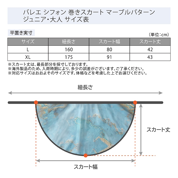 バレエ シフォン 巻きスカート マーブルパターン ジュニア・大人 |