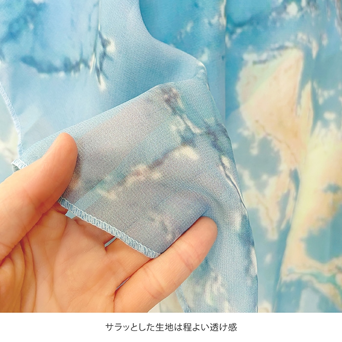 透け感のある軽い素材で、裾広がりのゆるやかなウェーブが優雅さと上品さを演出します。