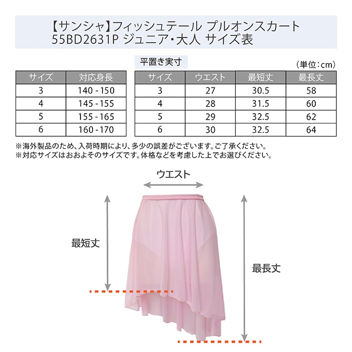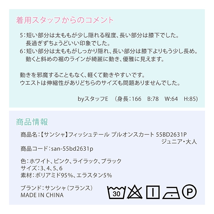 【サンシャ】フィッシュテール プルオンスカート 55BD2631P ジュニア・大人 |