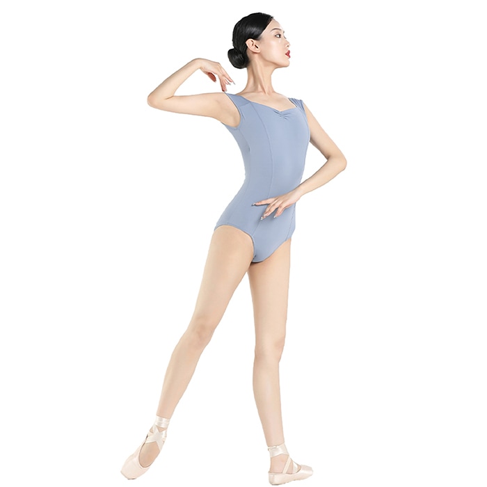 レオタードの両サイドにシーム(縫い目)があることによって、体のシルエットを縦長に見せ、スリムな印象を与えます。