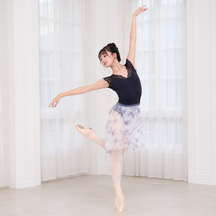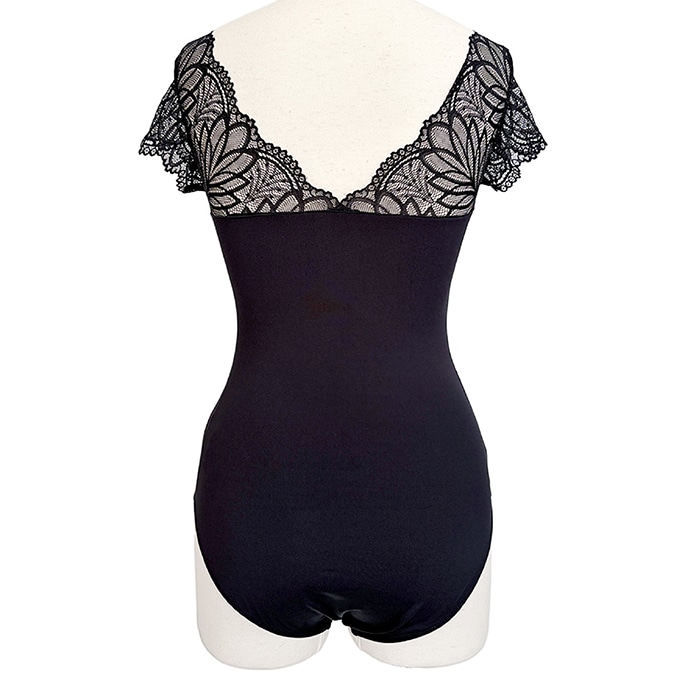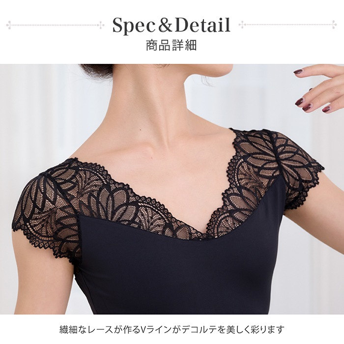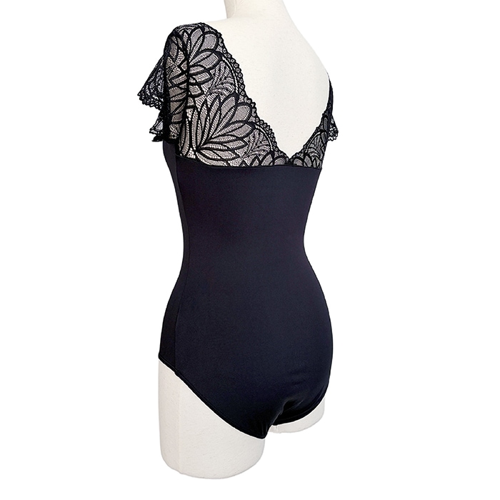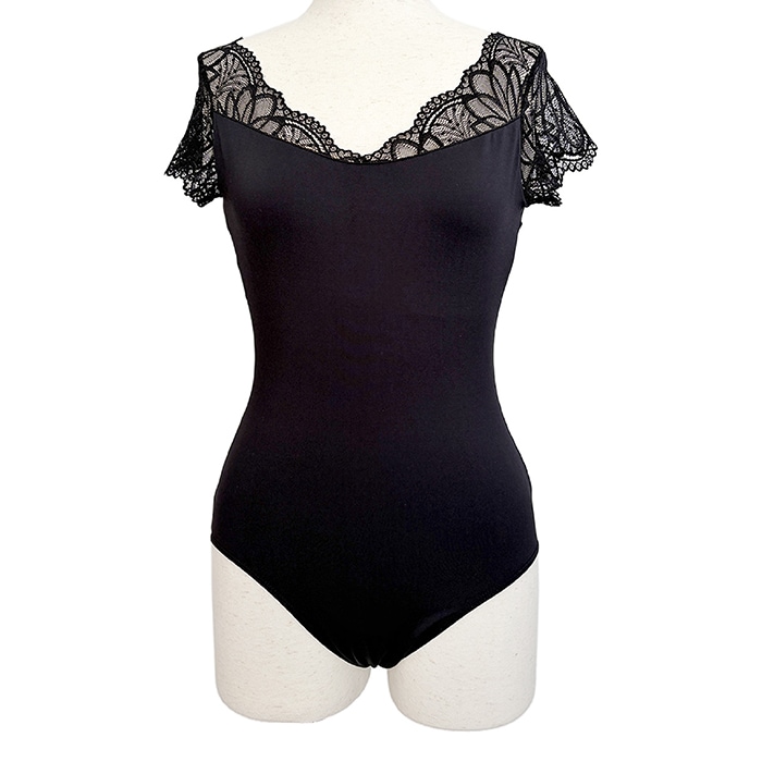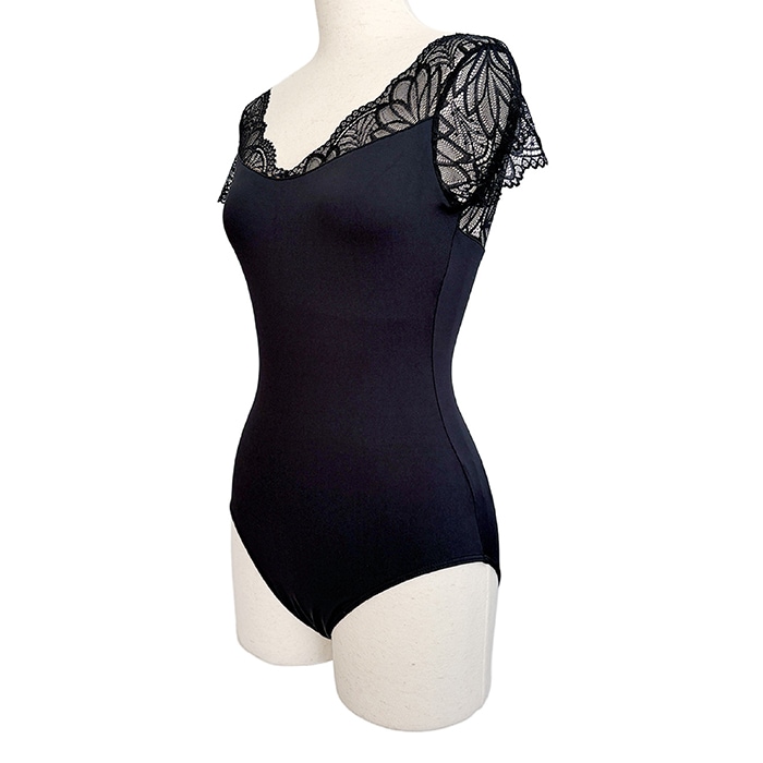 繊細なレースが美しい、キャップスリーブのレオタードです。
