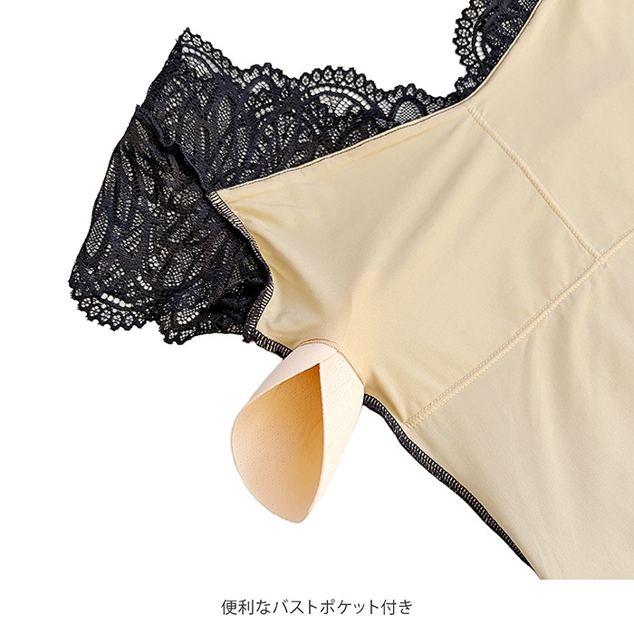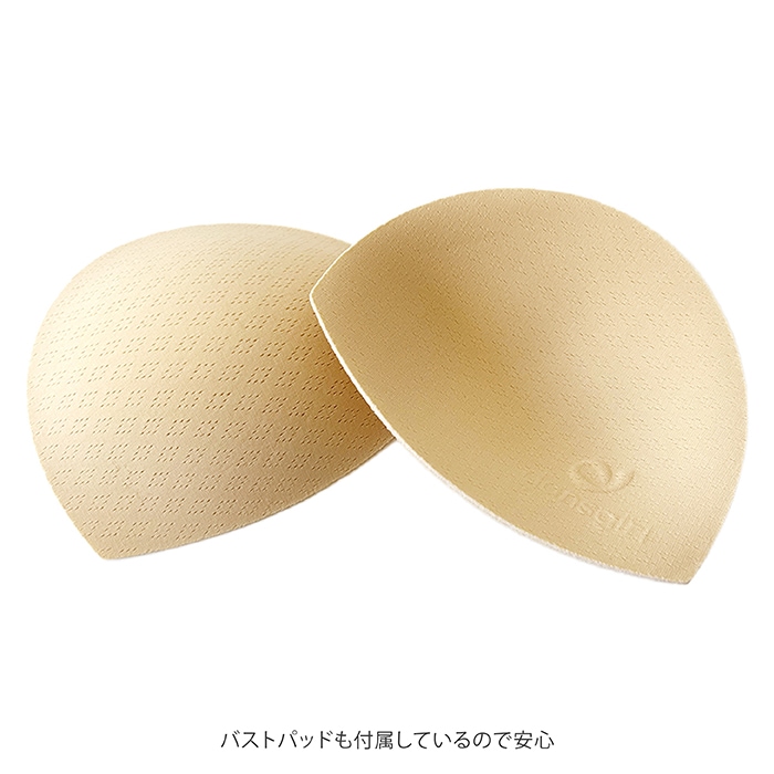便利なバストポケット付きで、更にバストパッドも付属しているので、この1枚でそのままご着用いただけます。