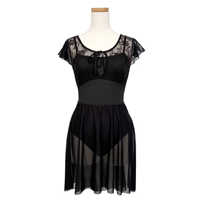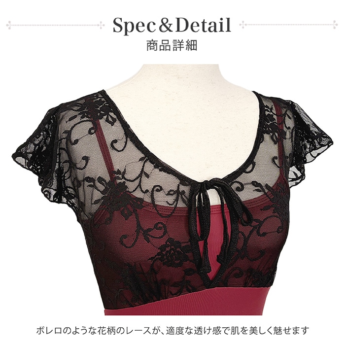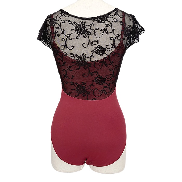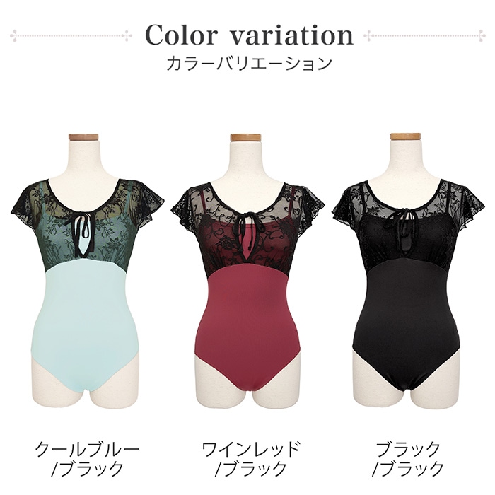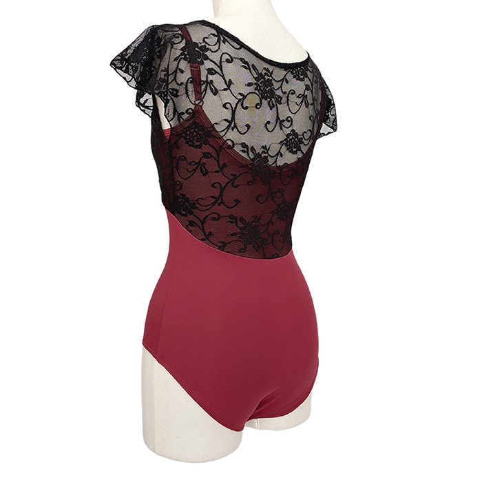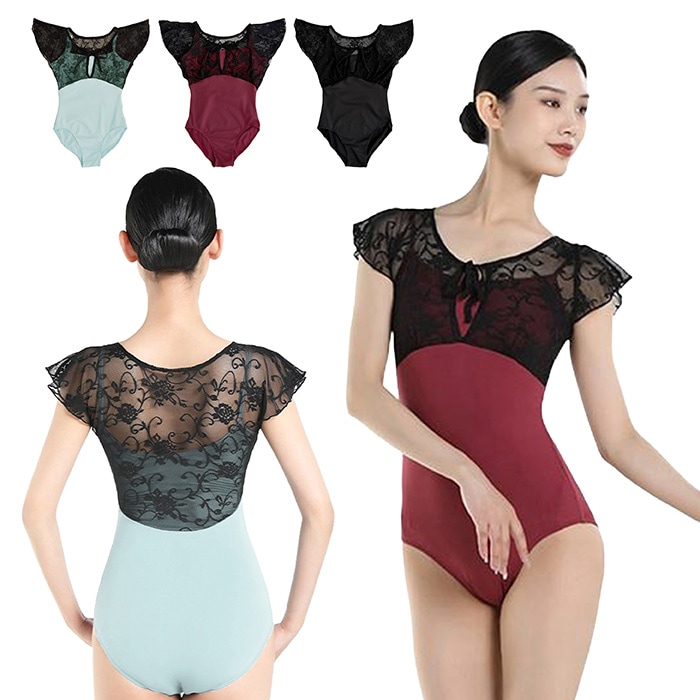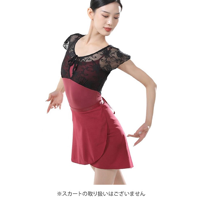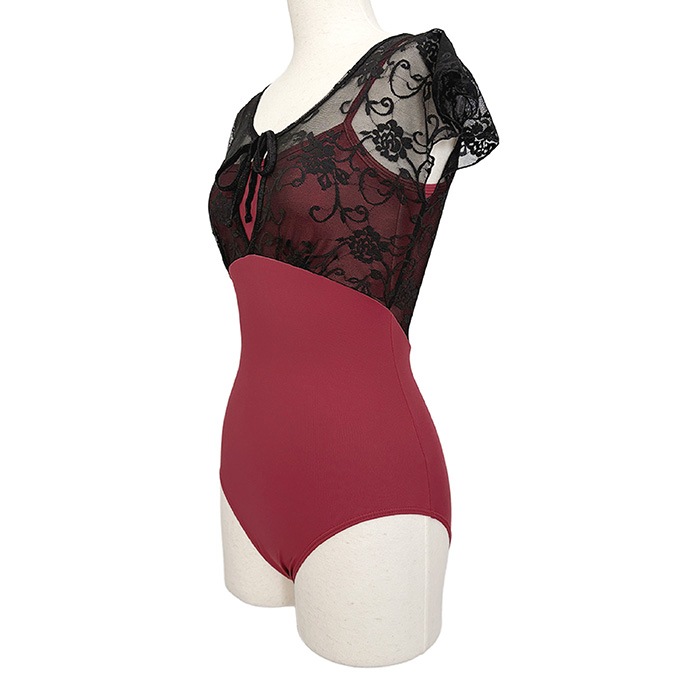 ボレロのようなキャップスリープのレースが、大人かわいいレオタードです。