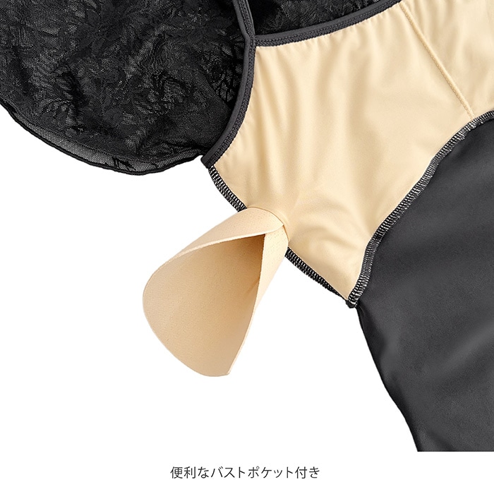 便利なバストポケット付きで、更にバストパッドも付属しているので、この1枚でそのままご着用いただけます。