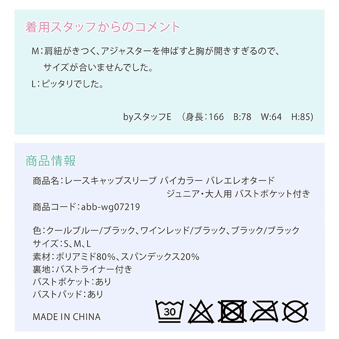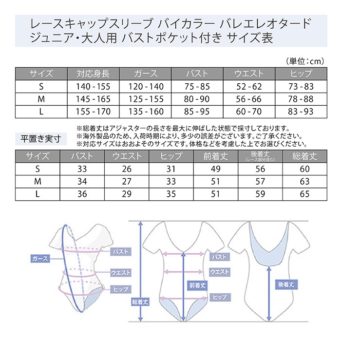 レースキャップスリーブ バイカラー バレエレオタード ジュニア・大人用 バストポケット付き |