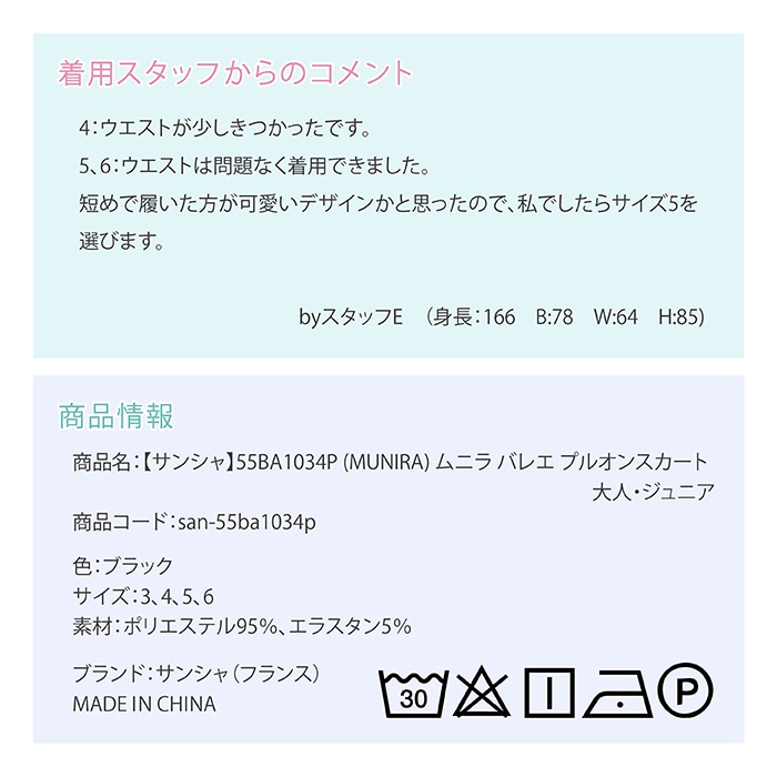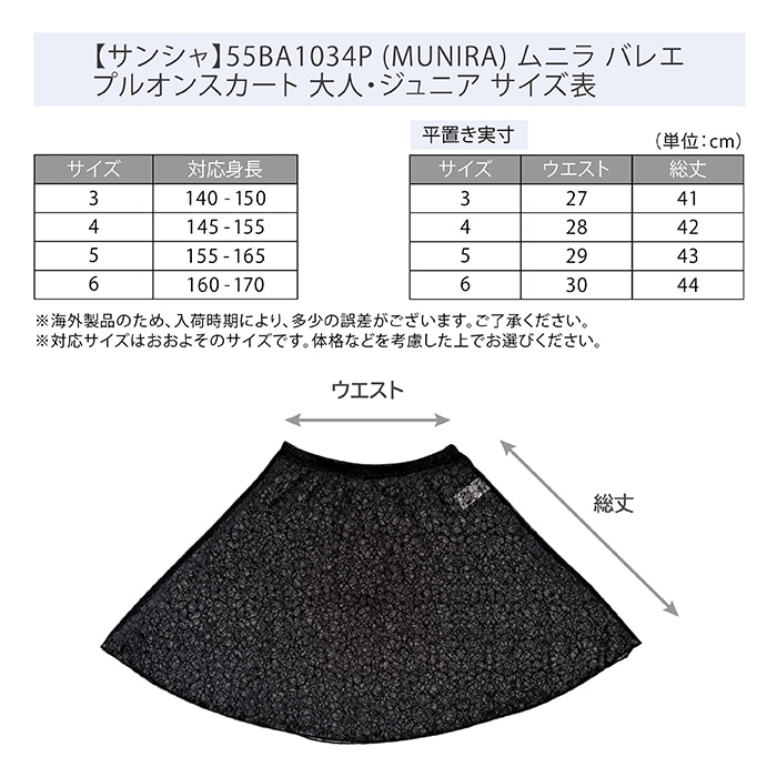 【サンシャ】55BA1034P (MUNIRA) ムニラ バレエ プルオンスカート 大人・ジュニア |