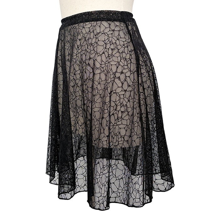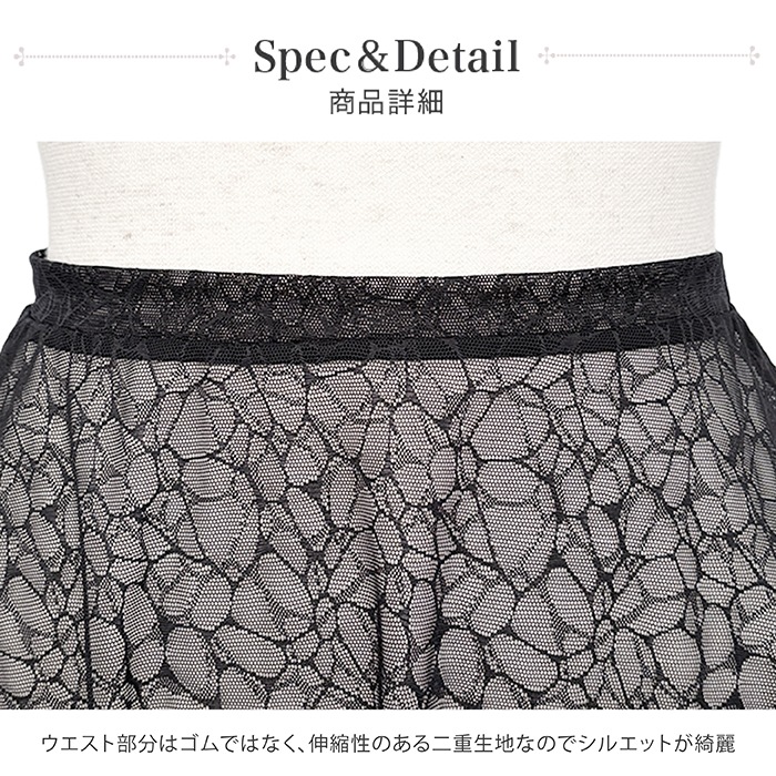 合わせやすいフレアタイプで、まるで水面のような模様のレース生地は肌に重ねると柄が浮かぶデザイン。
