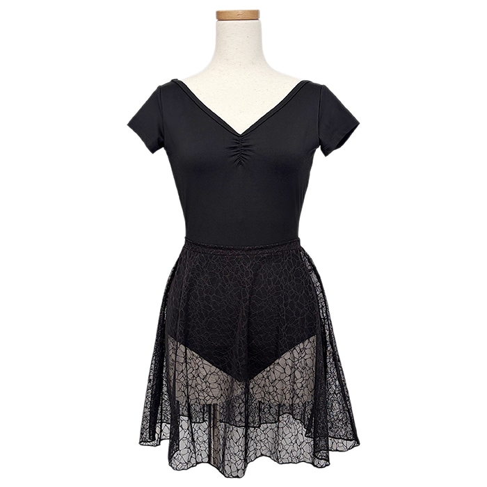 着用レオタード:V字ギャザー バックレース キャミソールレオタード
