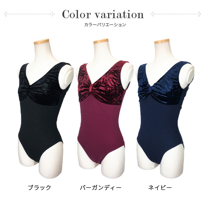 胸元のベロア素材が上品な印象の定番レオタード。