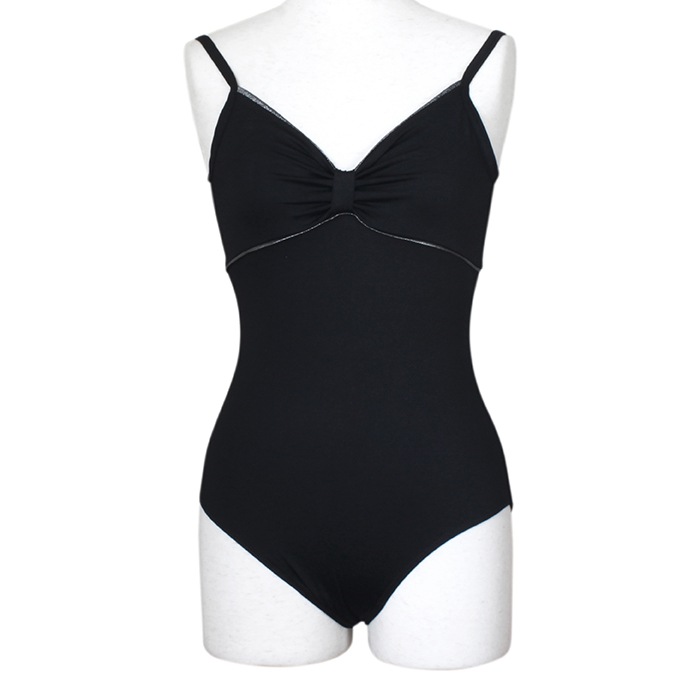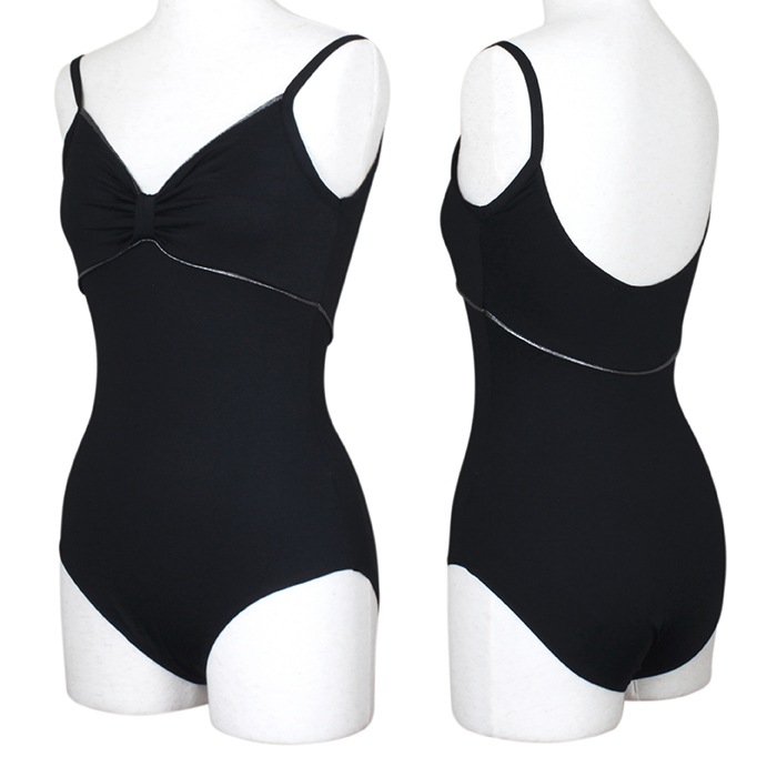 リボンモチーフの胸元がかわいい、キャミソールレオタードです。