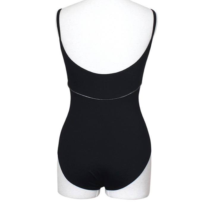 シンプルながら、さりげなく輝くラインやリボンモチーフがアクセントになる、おしゃれなレオタードです。
