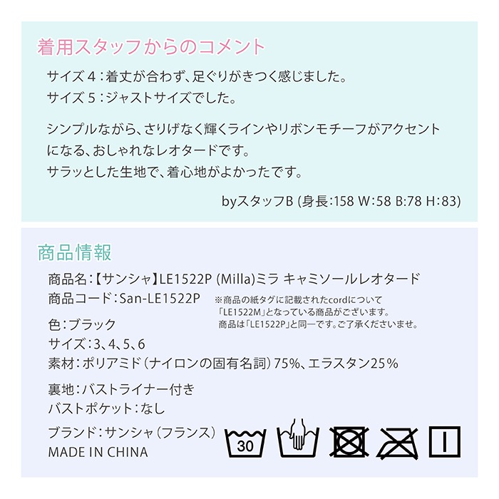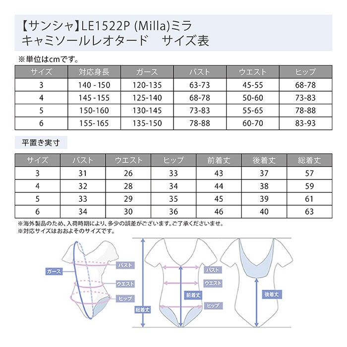 【サンシャ】LE1522P (Milla)ミラ キャミソール バレエレオタード 大人・ジュニア |