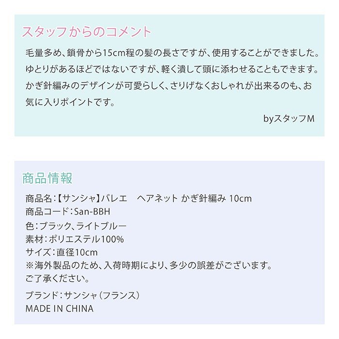 【サンシャ】バレエ ヘアネット(お団子・シニヨン)かぎ針編み 10cm キッズ・子供・ジュニア・大人 |