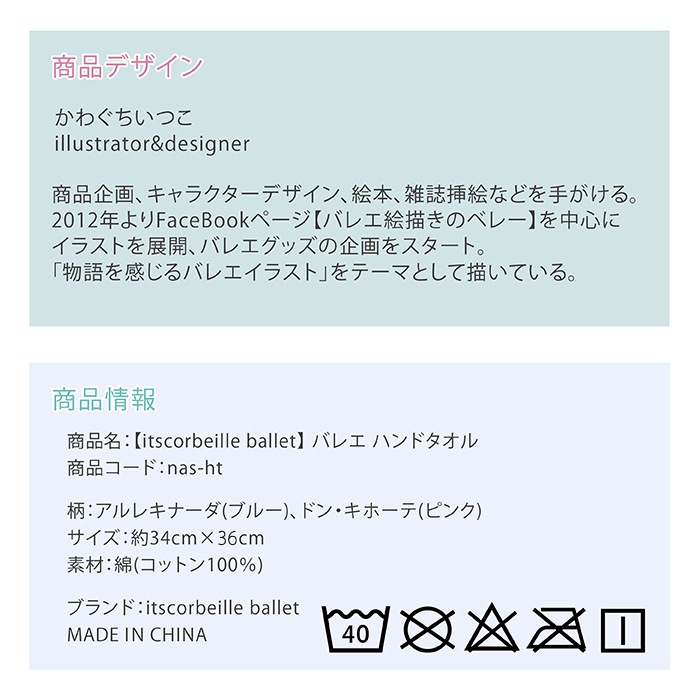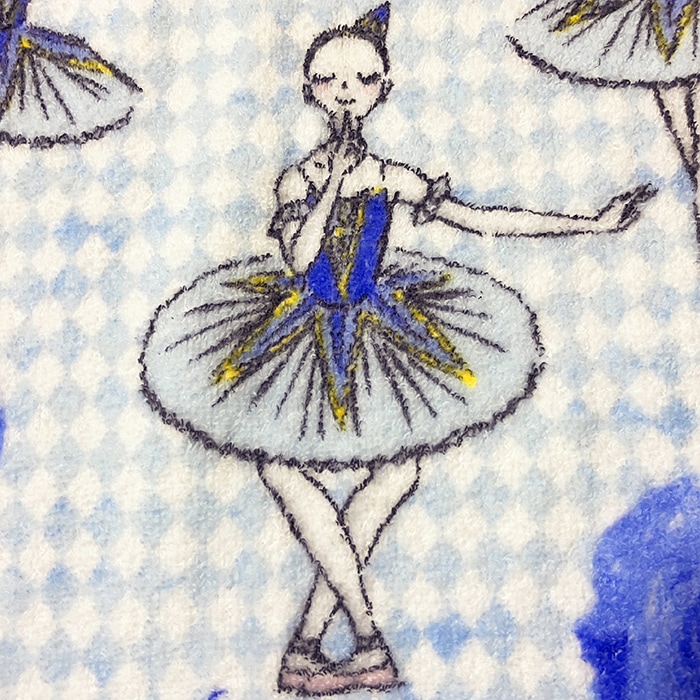 かわぐちいつこさんによる、イツコルベイユバレエの可愛らしいバレエ柄のハンドタオルです。