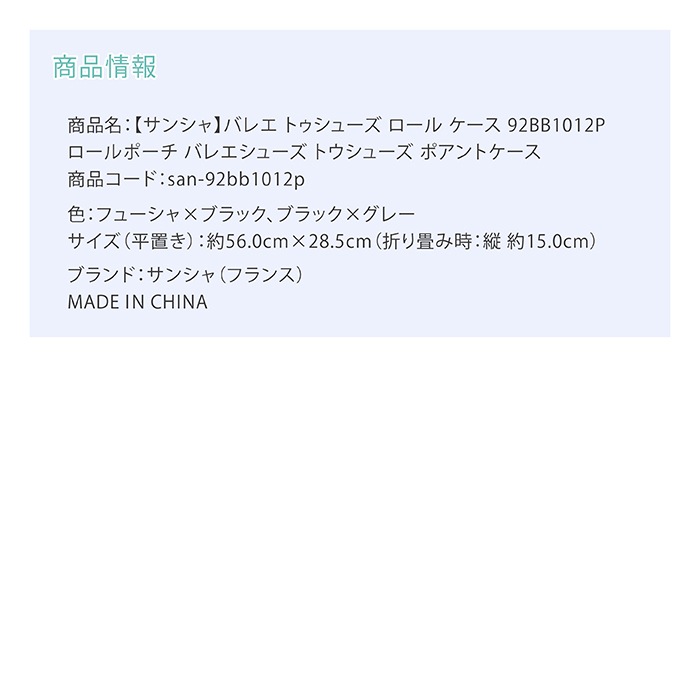商品名:【サンシャ】バレエ トゥシューズ ロール ケース 92BB1012P ロールポーチ バレエシューズ トウシューズ ポアントケース