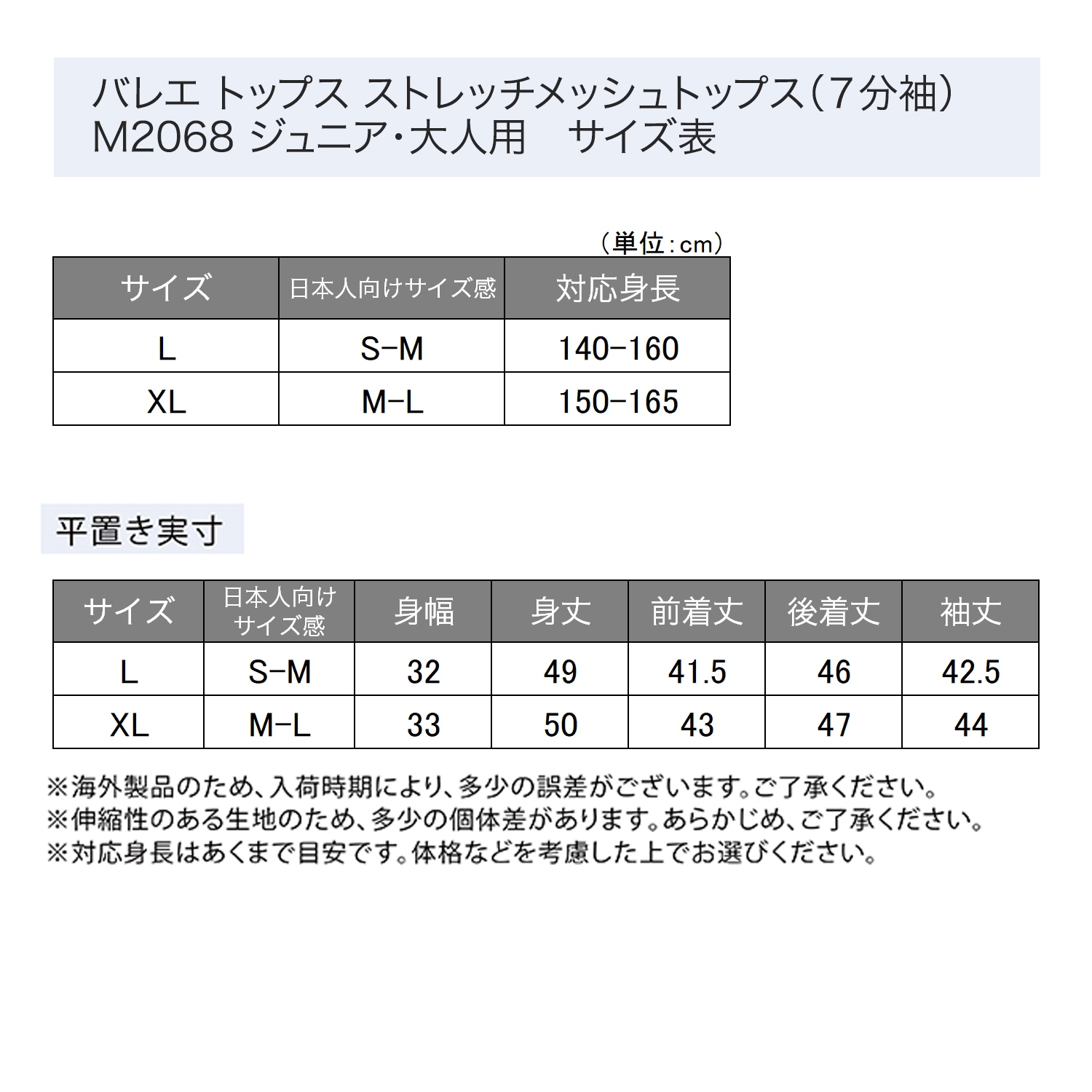 バレエ トップス ストレッチメッシュトップス(7分袖)M2068 ジュニア・大人用 |