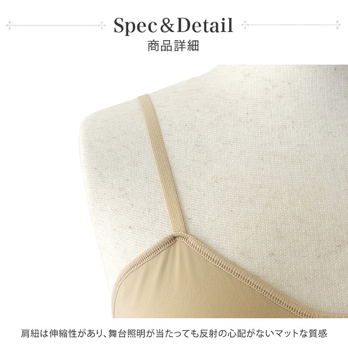 キャミソールタイプなので背中は大きく開いており、衣装のデザインを邪魔しません。